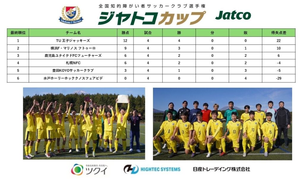 優勝は「TU王子ジャッキーズ」、準優勝は「横浜F・マリノスフトゥーロ」