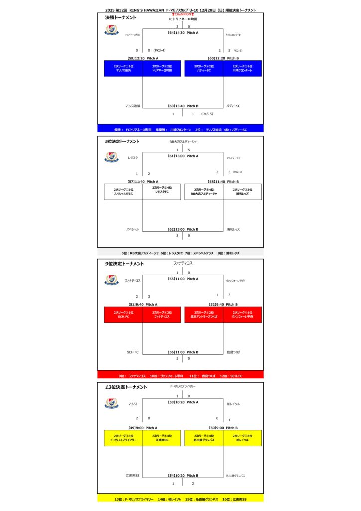 今回もピッチ上では白熱した戦いが繰り広げられ、横浜F・マリノスからはプライマリー追浜が3位という結果で大会を終えました。