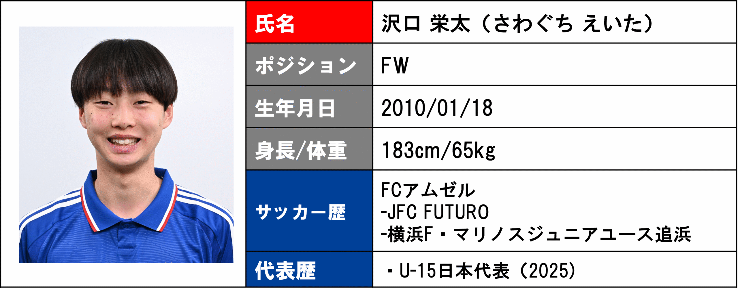 ユース所属 沢口 栄太選手 EAFF U-15 Championship 2025 U-15 日本代表メンバー選出のお知らせ
