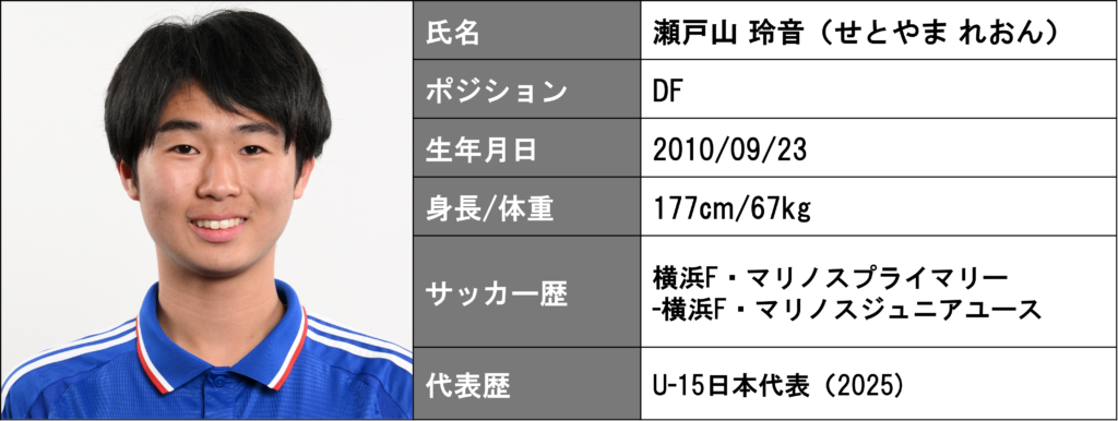 ユース所属の瀬戸山玲音選手が、3月27日(金)~4月8日(水)までフランスのモンテギューで行われる第53回モンテギュー国際大会2026のU-16日本代表メンバーに選出されましたので、お知らせいたします。