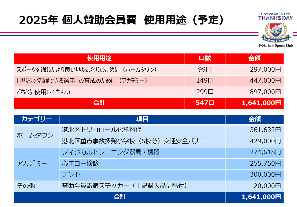 一般社団法人F・マリノススポーツクラブの賛助会員の皆さまを対象に、賛助会費使用用途のご説明ならびに、2025年度の活動報告を行いました。