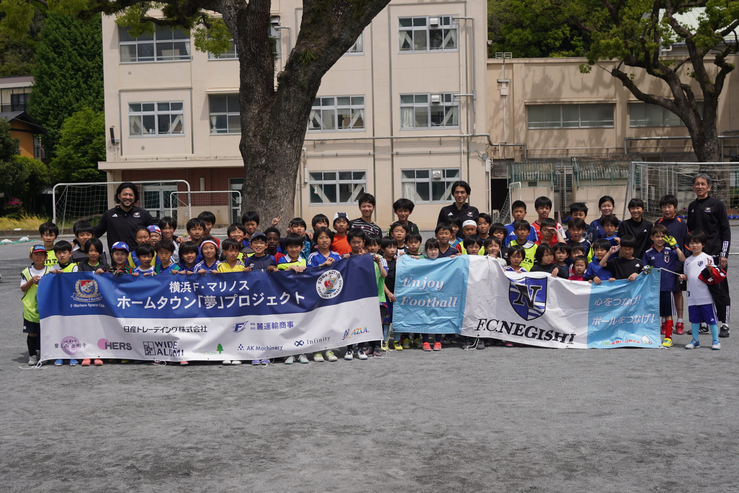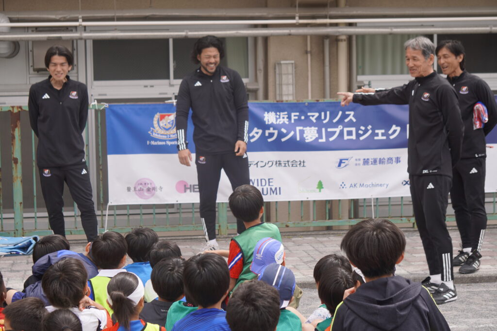 ホームタウン内の少年少女サッカーチームに横浜F・マリノスのOB選手と一緒にプレーをして、子どもたちに「夢」を持ってもらうことを目的に行われている【ホームタウン「夢」プロジェクト】。