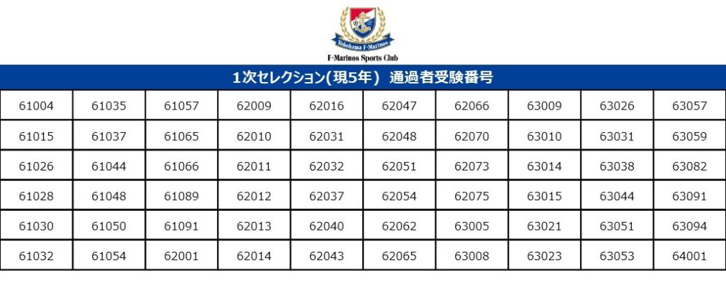 以下に1次セレクション通過者の受験番号を記載させていただきますのでご確認ください。