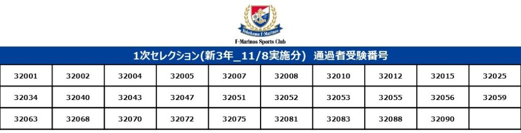 以下に1次セレクション通過者の受験番号を記載させていただきますのでご確認ください。