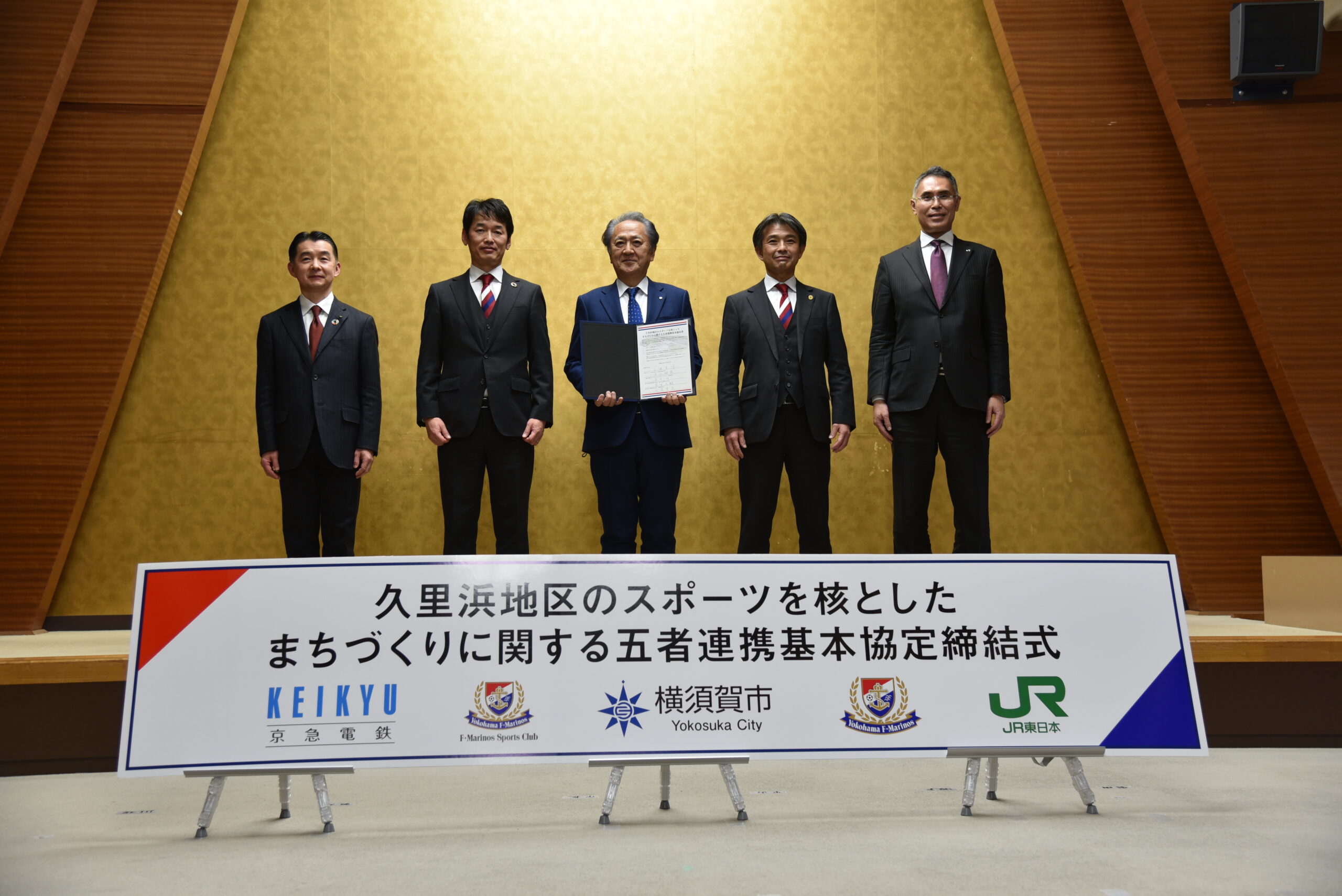 横須賀市(市長:上地 克明)、横浜マリノス株式会社(代表取締役社長:中山 昭宏)、一般社団法人F・マリノススポーツクラブ(代表理事:宮本 功)、東日本旅客鉄道株式会社(執行役員横浜支社長:宮田 久嗣)、京浜急行電鉄株式会社(取締役社長:川俣 幸宏)は、令和4年(2022年)12月26日(月)付で「久里浜地区のスポーツを核としたまちづくりに関する五者連携基本協定」を締結しましたので、お知らせします。