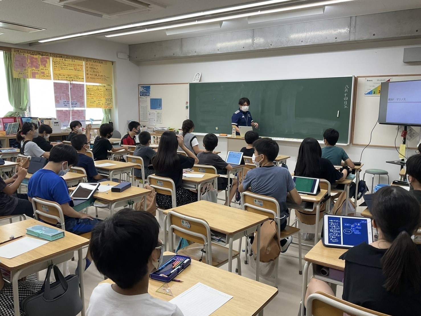 今回も、クラブスタッフが児童の皆さんにクラブの仕事を紹介するオリエンテーションを実施した後、「横浜F・マリノスを市民にもっと知ってもらう為には・好きになってもらう為には」といった課題を設定し、児童の皆さんに投げかけました。