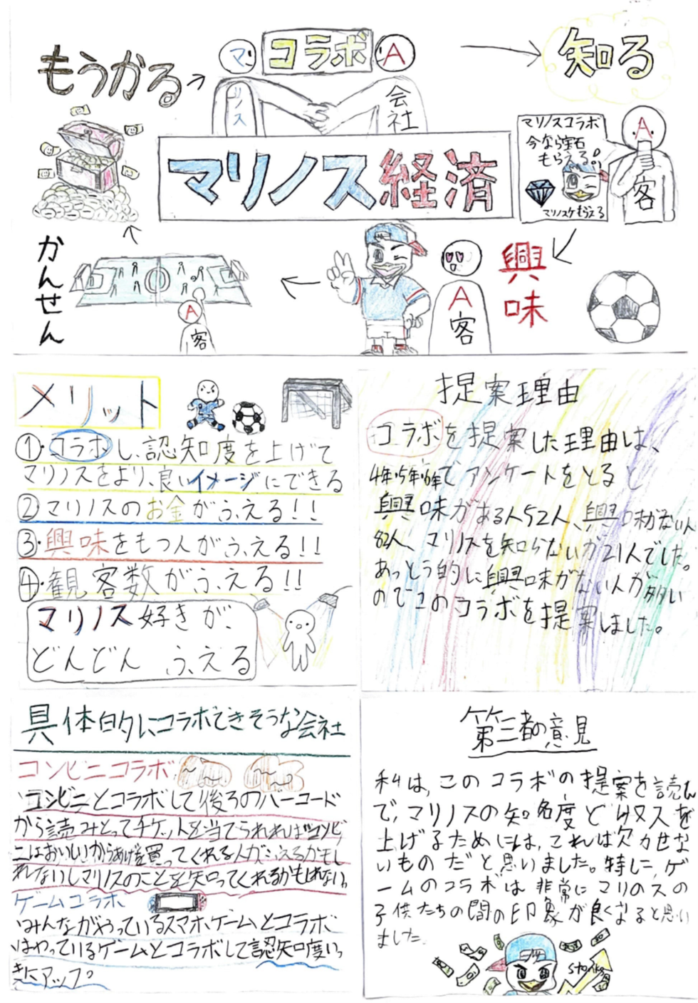 横浜F・マリノスプロジェクトに参加頂いた児童の皆さん、ありがとうございました。皆さんが考えてくれた素晴らしいアイデアにとても感動しました。これからも横浜F・マリノスの応援をよろしくお願いします。